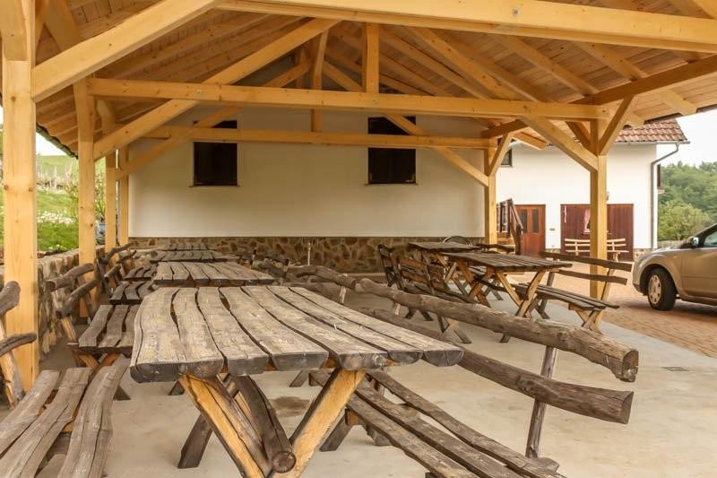Pobočja kmetije so obdana z vinogradi, ki v jesenskem času nudijo 6 različnih vrst vina, skozi vso leto pa pokušino več vrst vina. Ob dobrih vinih gostom nudijo doma pridelano hrano, saj je v hlevu vedno od 15 do 20 glav goveje živine, v svinjaku pa prav toliko prašičev. Na dvorišču so kokoši, petelin Koko, račke, mačke, vietnamski prašič, psa Medo in Reks…V velikem vrtu ob hiši raste solata, fižol, paradižnik, korenček, peteršilj in mnoga zelišča…Preprosta lesena igrala in travnik v neposredni bližini hiše vabijo otroke, da tekajo, se lovijo, igrajo z žogo … Hiša in hlev sta na samem, saj mimo ne vodi nobena cesta. Značilnost kmetije je s slamo krita hiša, ki sprejme cirka 60 gostov in nudi nočitve s hrano osebam v sobah ali oddih v treh apartmajih. Pogled iz razgledne točke naše kmetije se lahko ustavi na številnih okoliških cerkvah, zaobjame velik del Slovenskih goric, Haloz, Pohorja, seže pa tudi v Avstrijo, Madžarsko in Hrvaško.