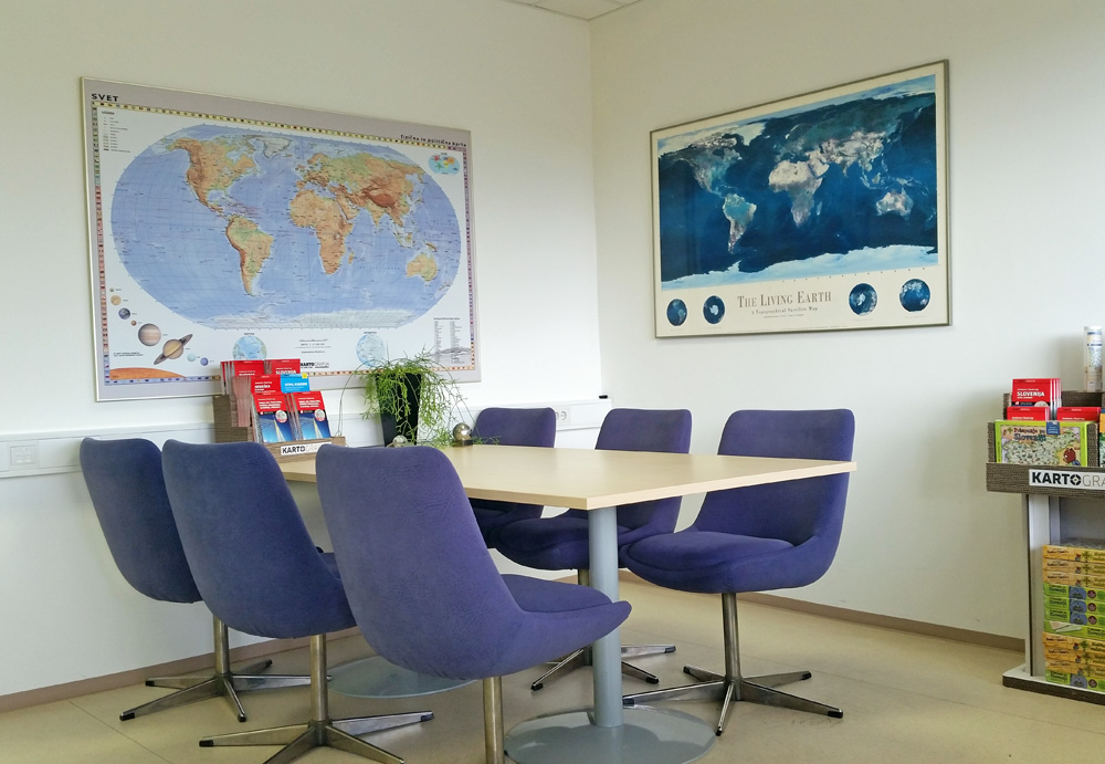 Kartografija d.o.o. je podjetje, specializirano za izdelavo, prodajo in distribucijo zemljevidov in stenskih kart. Zemljevidi pod blagovno znamko Kartografija so sveži, pregledni in vsebinsko bogati. V ponudbi imamo več kot 200 različnih kart in zemljevidov. Poleg standardnih izdelkov iz našega obsežnega založniškega programa, vam na osnovi naših dolgoletnih izkušenj s področja kartografske dejavnosti, najsodobnejše tehnologije, sproščene kreativnosti ter nekaj drzne domišljije nudimo tudi izdelavo tematskih, občinskih, turističnih, digitalnih, stenskih kart oziroma zemljevidov.
