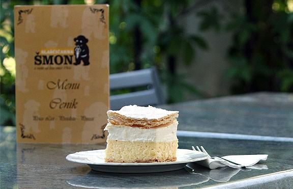 Pri Šmonu vam dnevno ponujamo veliko izbiro svežih slaščic, trajnega peciva, sladoled domače proizvodnje, sadne kupe, tople in osvežilne napitke ter še veliko več. Poizkusite naše hišne specialitete: rezina Šmon, kremna rezina, grmada s smetano in gibanica.