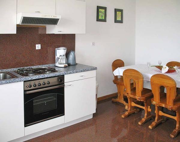 Deliti na vrtu: 2 ležalnike, teraso z leseno mizo / lesene klopi, žar. Parkiranje na ulici v bližini hiše. Balkon (cca 17 kvadratnih metrov), s pohištvom in pogledom na morje. Talne obloge. Satellite TV. Centralno ogrevanje na olje.