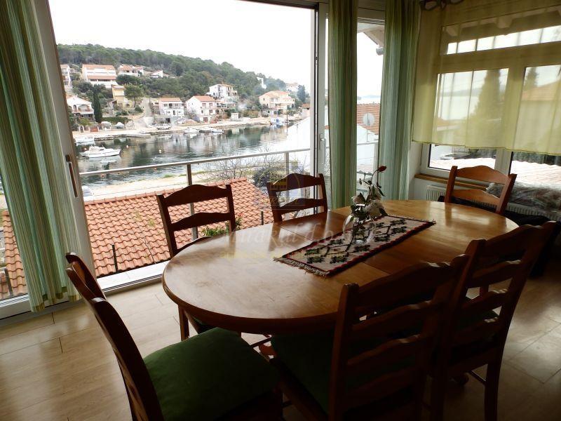 Na Hrvaškem v Tisnu se prodaja družinska hiša s stanovanjem in apartmajem skupne velikosti približno 120 m2, ki se nahaja na parceli velikosti 350 m2. Hiša se nahaja v drugi vrsti ob obali in ima čudovit pogled na morje.
